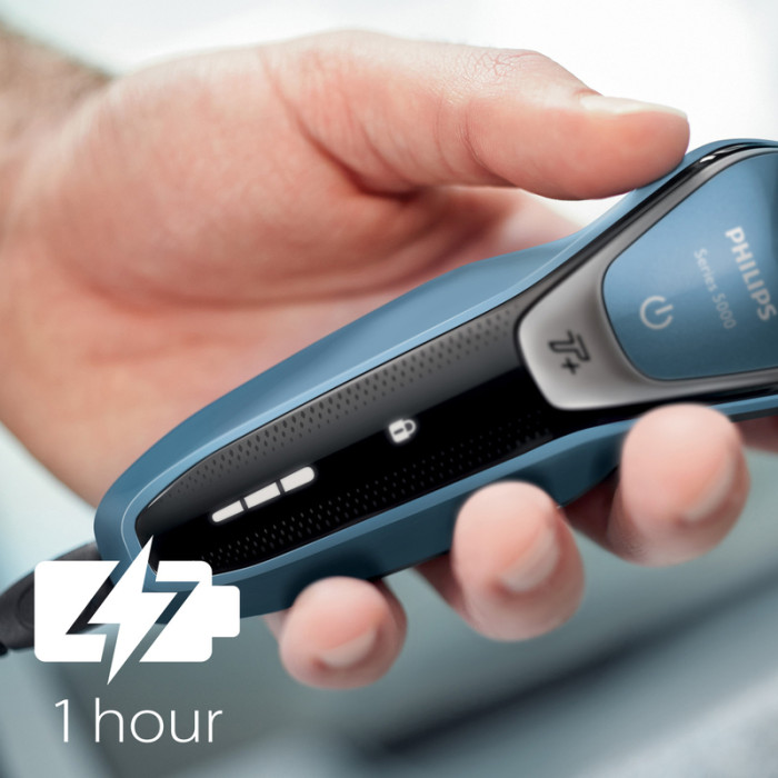Бритва серии S5000 позволяет тратить меньше времени на утреннее бритье благодаря системе лезвий MultiPrecision и моющимся головкам.