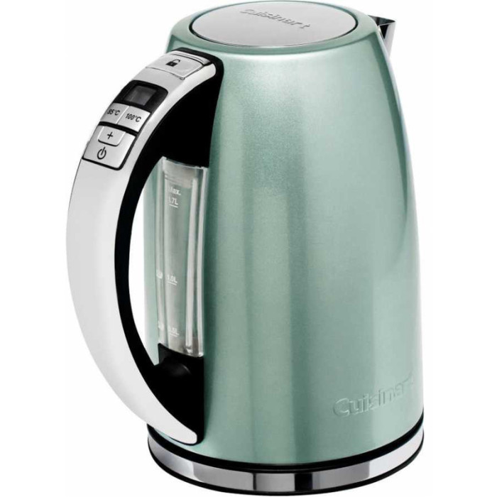 Cuisinart CPK17GE – мощный и функциональный электрочайник, который быстро подогреет воду до нужной температуры. Среди его достоинств функциональная панель управления на ручке, цифровой термометр и шкала уровня воды с подсветкой, а также надежный корпус из нержавеющей стали. Кроме того, изделие порадует стильным дизайном и будет радовать глаз изо дня в день.