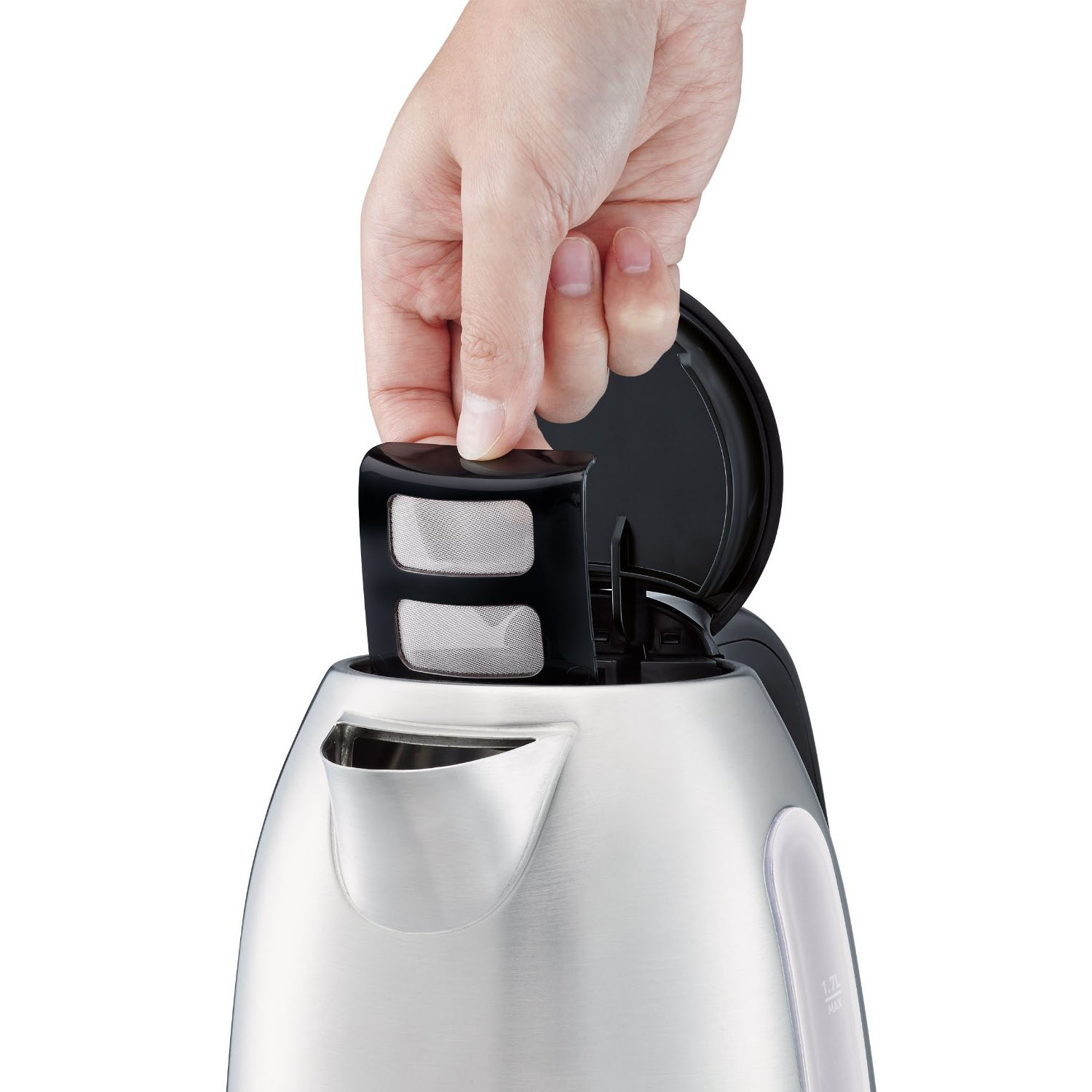 Высокая мощность в 2400 Вт и скрытый нагревательный элемент обеспечивают быстрое закипание воды, чтобы вам не приходилось долго ждать. Кроме того, такой тип нагревателя, не имеющий прямого контакта с водой, способствует простой и удобной чистка внутренней части чайника, что продлевает срок его службы.