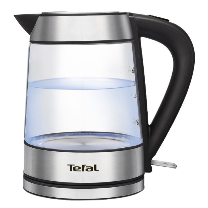 Стеклянный чайник Tefal объемом 1,7 л. со вставками из нержавеющей стали
