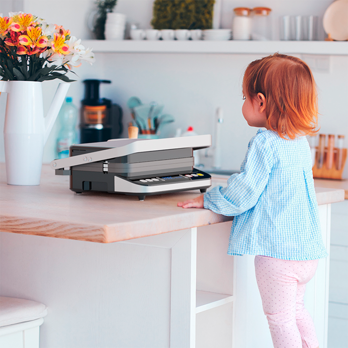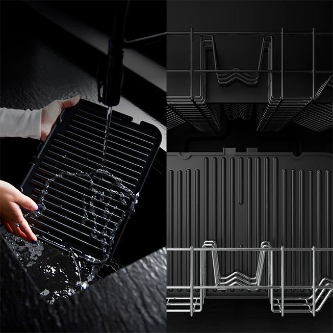 Жир, который образуется во время приготовления, стекает в поднос. Это помогает поддерживать чистоту на вашей кухне.