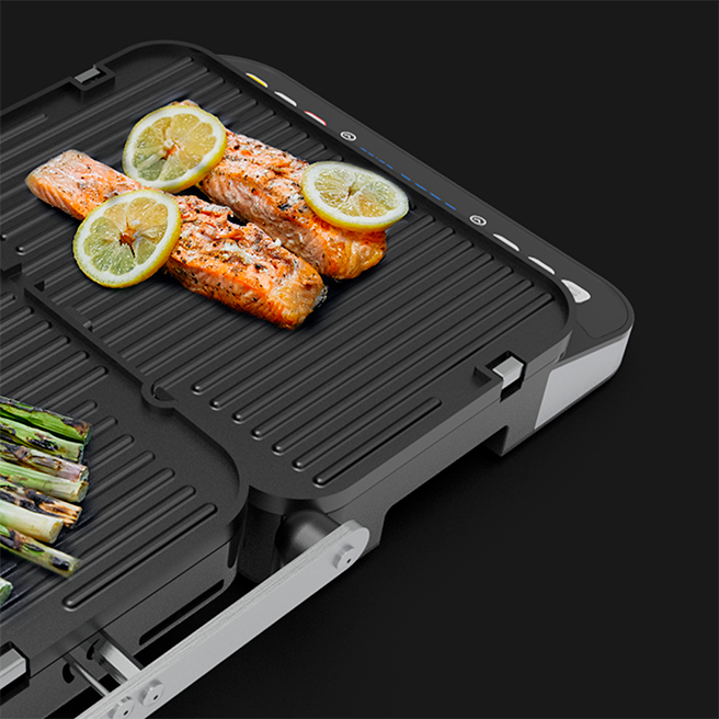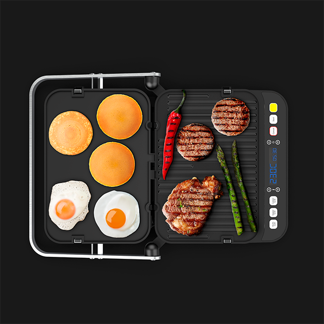 Ребристая панель подойдет для приготовления стейка, рыбы или овощей гриль. Плоская – идеальна для жарки блинов, яичницы или даже пиццы.
