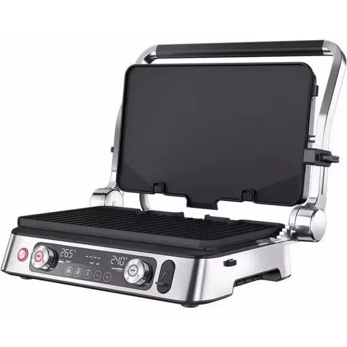 Кроме того, контактное положение осторожно прижимает пищу между пластинами, чтобы свести к минимуму время приготовления. Используйте открытое положение и вы получите две большие пластины для приготовления двух разных блюд одновременно.