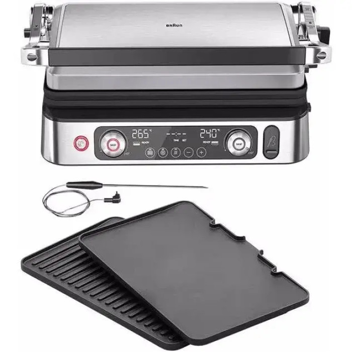 Необычайная точность и универсальность у вас под рукой. Два независимых электронных регулятора температуры позволяют точно установить температуру каждой пластины по отдельности, чтобы вы могли одновременно готовить два вида пищи на двух разных температурах.