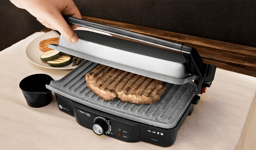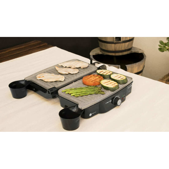 Устали от сковороды? Хотите разнообразить не только рацион, но и вкусовые варианты любимых блюд? Электрический гриль CECOTEC Rock'nGrill 1500 W мощностью 1500 Вт поможет быстро получить самые вкусные шашлыки и ребрышки. Теперь наслаждаться вкусностями можно не только на природе, но и у себя дома! Получайте удовольствие не только от невероятного вкуса, но и от качественного нетоксичного антипригарного покрытия RockStone.