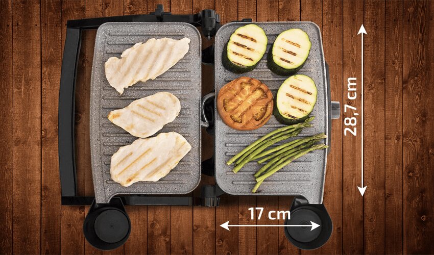 Пока готовятся одни продукты, другие могут остыть и стать уже не такими вкусными. С поверхностью 28,7 х 17 см можно готовить несколько блюд одновременно: и мясо, и овощи, и другие ингредиенты.