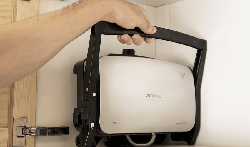 Боитесь покупать дополнительную кухонную технику, потому что и без нее масло места? Электрический гриль CECOTEC очень эргономичен, его можно хранить в вертикальном положении даже в шкафчике.