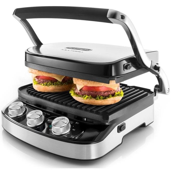 Благодаря продуманной конструкции гриля DeLonghi CGH 912, у вас появится возможность готовить как классические блюда на гриле, так и использовать его как барбекю. Согласитесь, что погода зачастую портит запланированный выход на шашлыки. С электрогрилем DeLonghi CGH 912, вы всегда сможете насладится любым «мангальным» блюдом, даже не выходя из дома. Просто раскройте гриль в одну плоскость и используйте его как полноценное барбекю.