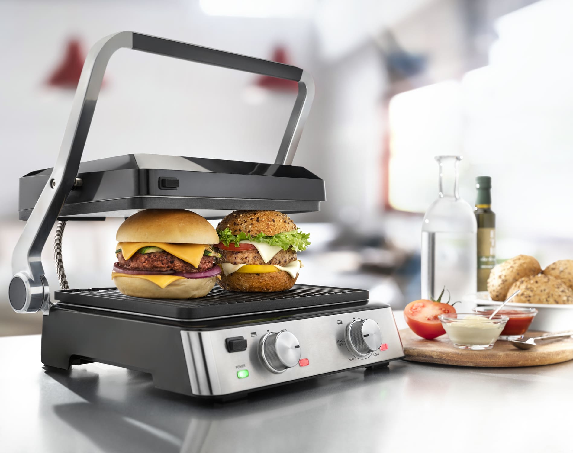 Каждая из пластин гриля имеет отдельный ТЭН и рукоятку управления, что позволяет контролировать их нагрев по-отдельности. Таким образом, вы можете параллельно готовить разные продукты на оптимальной для них температуре.