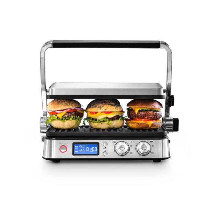 Три режима приготовления Режим контактного гриля идеален для быстрого приготовления, режим открытого гриля даёт возможность готовить несколько продуктов одновременно, а режим гриля печи позволяет поджарить нижнюю и слегка подрумянить верхнюю часть блюда.