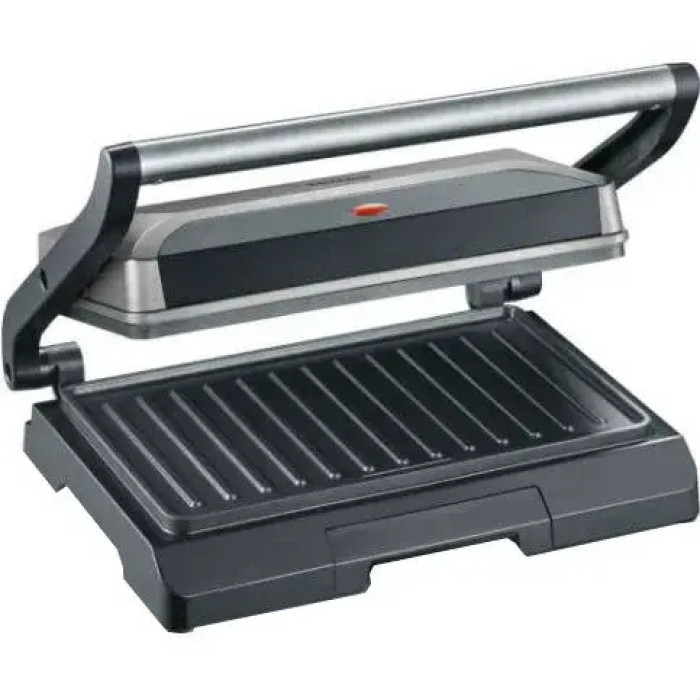 Этот электрогриль также оснащен продуманными функциями, которые делают его использование максимально комфортным. Надежный механизм позволяет легко контролировать крышку, прижимая ее только слегка или сильнее, в зависимости от желаемого результата. Контрольная лампа информируют о состоянии нагрева, а теплоизолированная ручка предотвращает ожоги, обеспечивая безопасное использование. Кроме того, съемный поддон для сбора жира упрощает уход за устройством и поддержание его в чистоте.