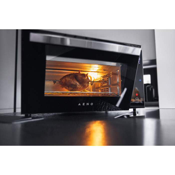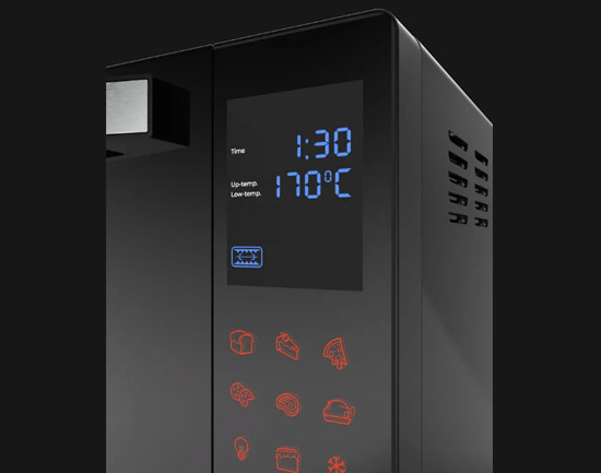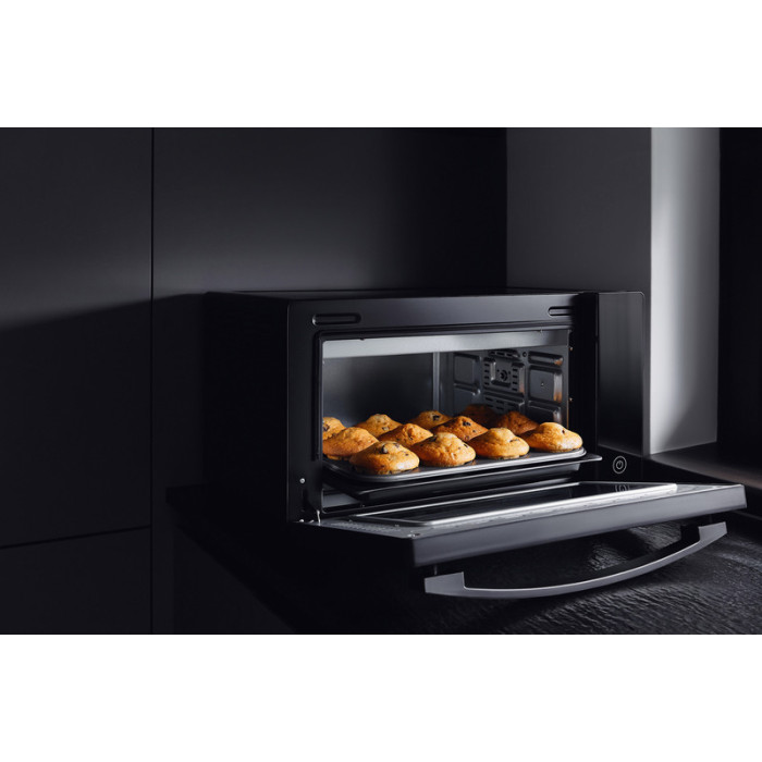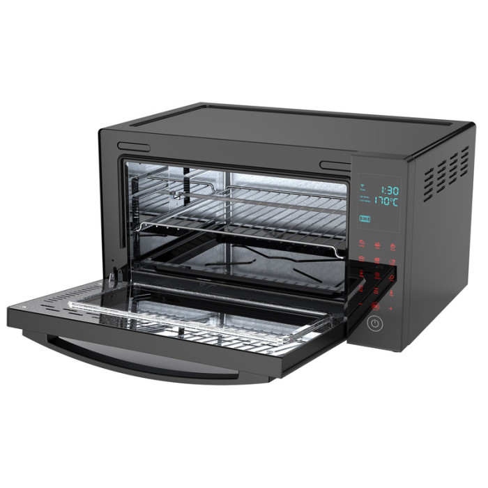Выбор режимов нагрева: Верхний нагрев, нижний нагрев, верхний и нижний нагрев, верхний и нижний нагрев с конвекцией, верхний и нижний нагрев с грилем, верхний и нижний нагрев с конвекцией и грилем. Независимые настройки верхних и нижних нагревательных элементов позволяют запекать при температуре от 38 °С до 230 °С. И устанавливать время приготовления до 120 минут.