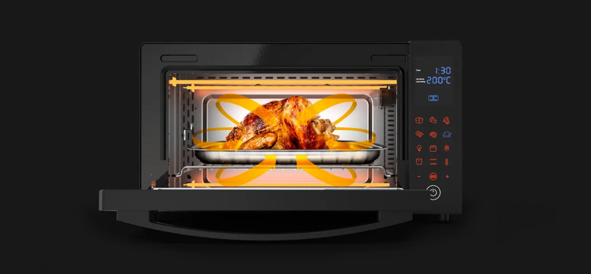 Горячий воздух циркулирует внутри духовки, и пища готовится быстро и равномерно со всех сторон, пока не станет хрустящей.