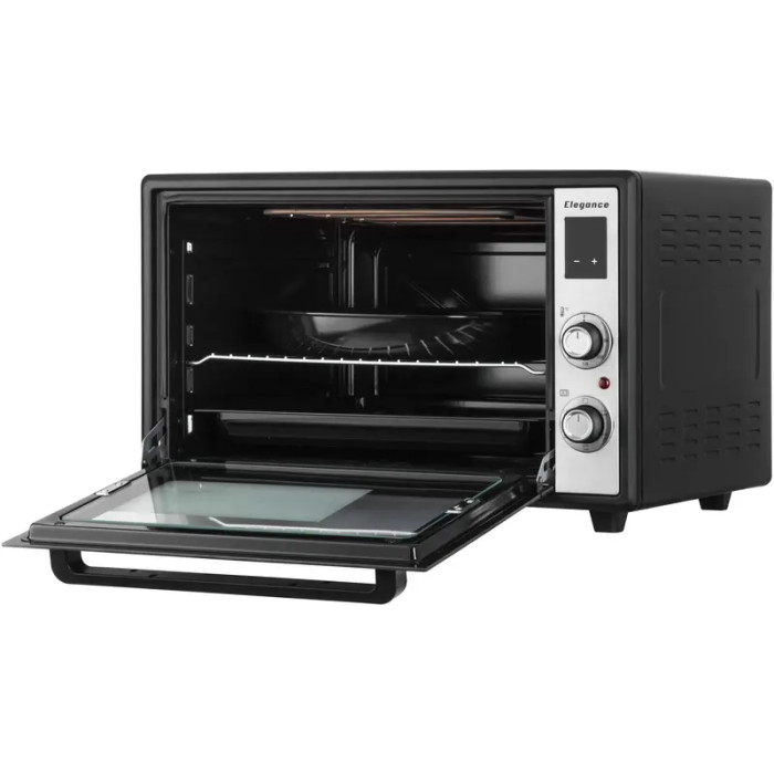 Дверца из двойного закаленного стекла, скрытый нижний нагревательный элемент и улучшенная теплоизоляция гарантируют безопасное использование. Нескользящие ножки, эмалированная внутренняя камера, внутреннее освещение, вертел, несколько видов противней (прямоугольный, круглый) и решетка для гриля — все для удобства и удачного результата каждый раз.