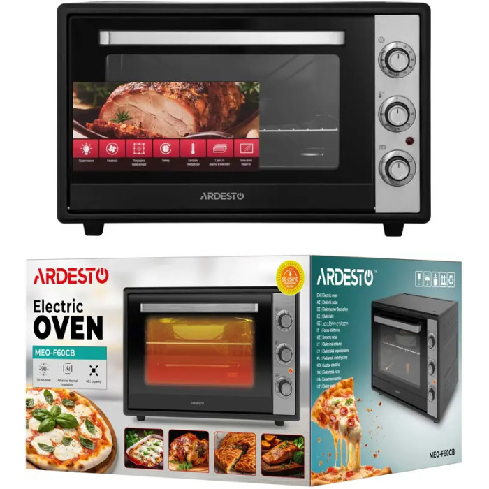 Электрическая печь ARDESTO — надежный помощник на кухне для настоящих кулинарных экспериментов! Благодаря объему 60 л и мощности 2034 Вт она обеспечивает равномерное приготовление даже большого количества продуктов. Регулировка температуры от 50 до 250 °C и 5 режимов, включая конвекцию, обуславливают возможность готовить блюда различной сложности. С таймером до 90 мин и индикацией завершения процесса легко контролировать время, а внутреннее освещение добавляет удобства.