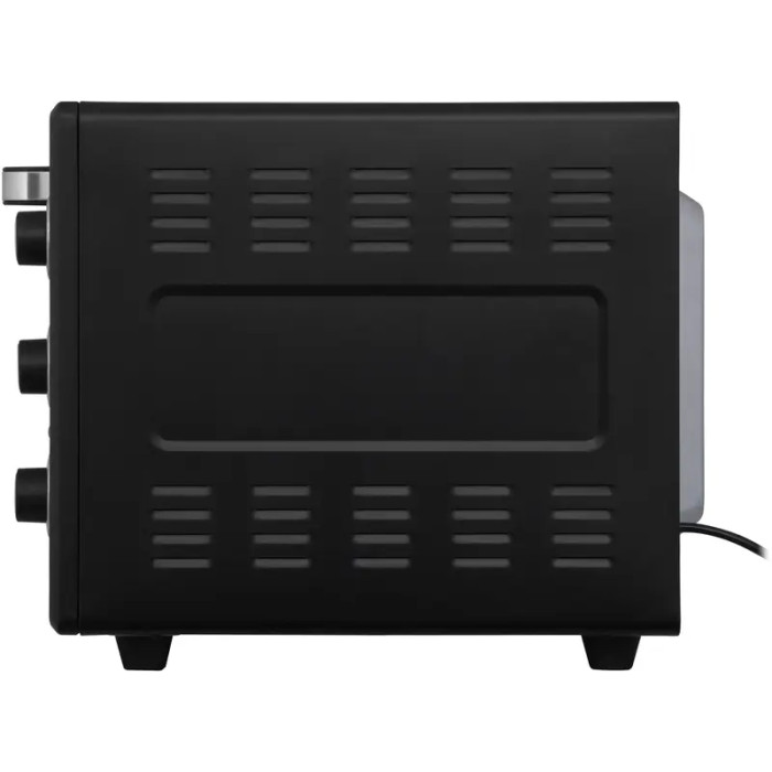 Дверца из двойного закаленного стекла и улучшенная теплоизоляция, хромированные нагревательные элементы, в том числе нижний скрыто, двухслойная задняя стенка и эмалированное покрытие внутренней камеры гарантируют безопасность использования. В комплекте к модели предоставлены прямоугольный и круглый противни, а также решетка для гриля. Устойчивость печи обеспечивают нескользящие ножки.