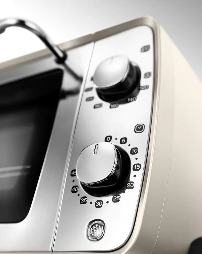 Электропечь имеет таймер на 45 минут и термостат на 220°, это сделает приготовления легким и удобным. Внутреннее тефлоновое покрытие необходимо для того, чтобы блюда не пригорали. Цена товара приемлема, вы поймете это, когда начнете работу с электропечью. Вместе с электропечью вы получите решетку, форму для выпекания и поддон для крошек. Первые два приспособления нужны для запекания блюд, третье – для функционирования электропечи в качестве тостера.