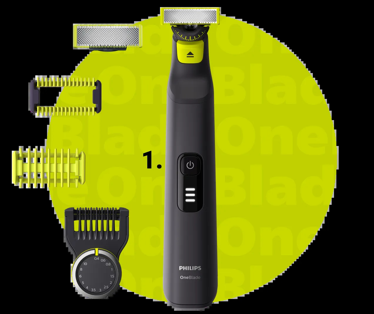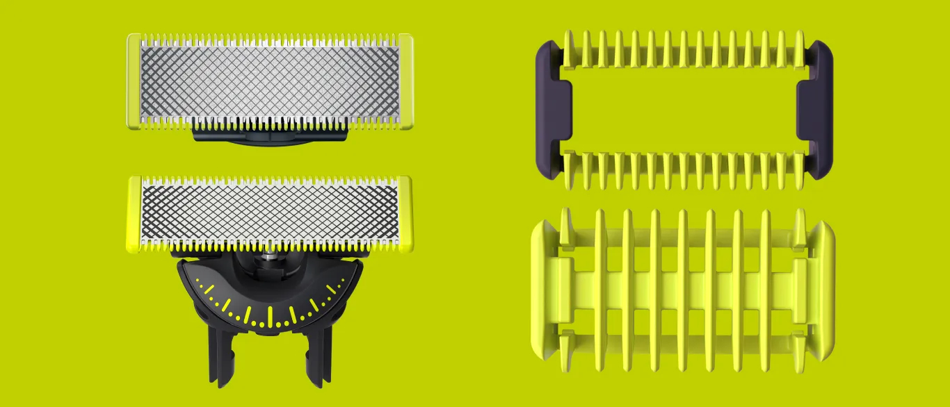 В комплект входят 2 лезвия OneBlade и насадки для тела.