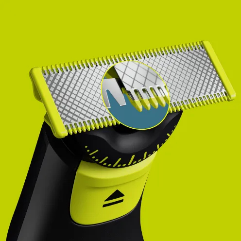 Philips OneBlade бреет не так близко к коже, как традиционная бритва – поэтому вашей коже комфортно. В наборе 2 дополнительные насадки: гребень для тела (3мм), а также защитная сетка для чувствительных участков и интимных зон.