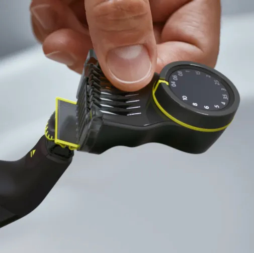С электростанком Philips OneBlade подравнивайте бороду и щетину до нужной длины с помощью регулируемого точного гребня из комплекта. Он имеет 14 настроек длины с фиксацией, чтобы создать нужный стиль – от легкой "вечерней" щетины до средней щетины и длинной бороды от 0,4 до 10 мм.