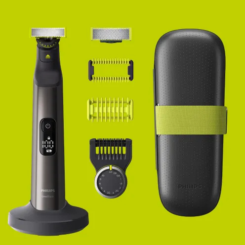 В комплект входят 2 лезвия OneBlade и насадки для тела.