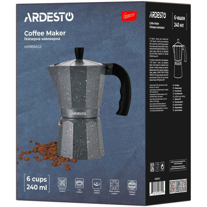 Гейзерная кофеварка Ardesto Gemini Molise, 0.24л, 6 чашек, алюминий, серый