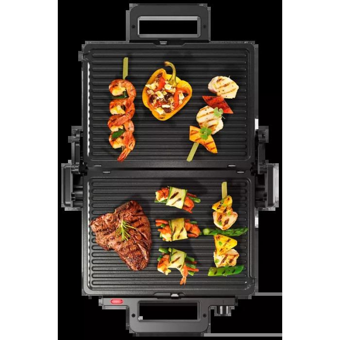 Полезные и вкусные блюда благодаря трем позициям контактного гриля, открывающим практически безграничные возможности воплощения в жизнь творческих идей на кухне. Закрытый, как контактный гриль, открытый, как настольный гриль и с режимом "верхний и нижний нагрев" — для жарки, запекания, гратинирования или нагревания. Готовьте сочные стейки, вкусные гамбургеры, тосты, панини, бутерброды или фокаччу – наслаждайтесь тем, что вам нравится. Вкусно, низкокалорийно и полезно.