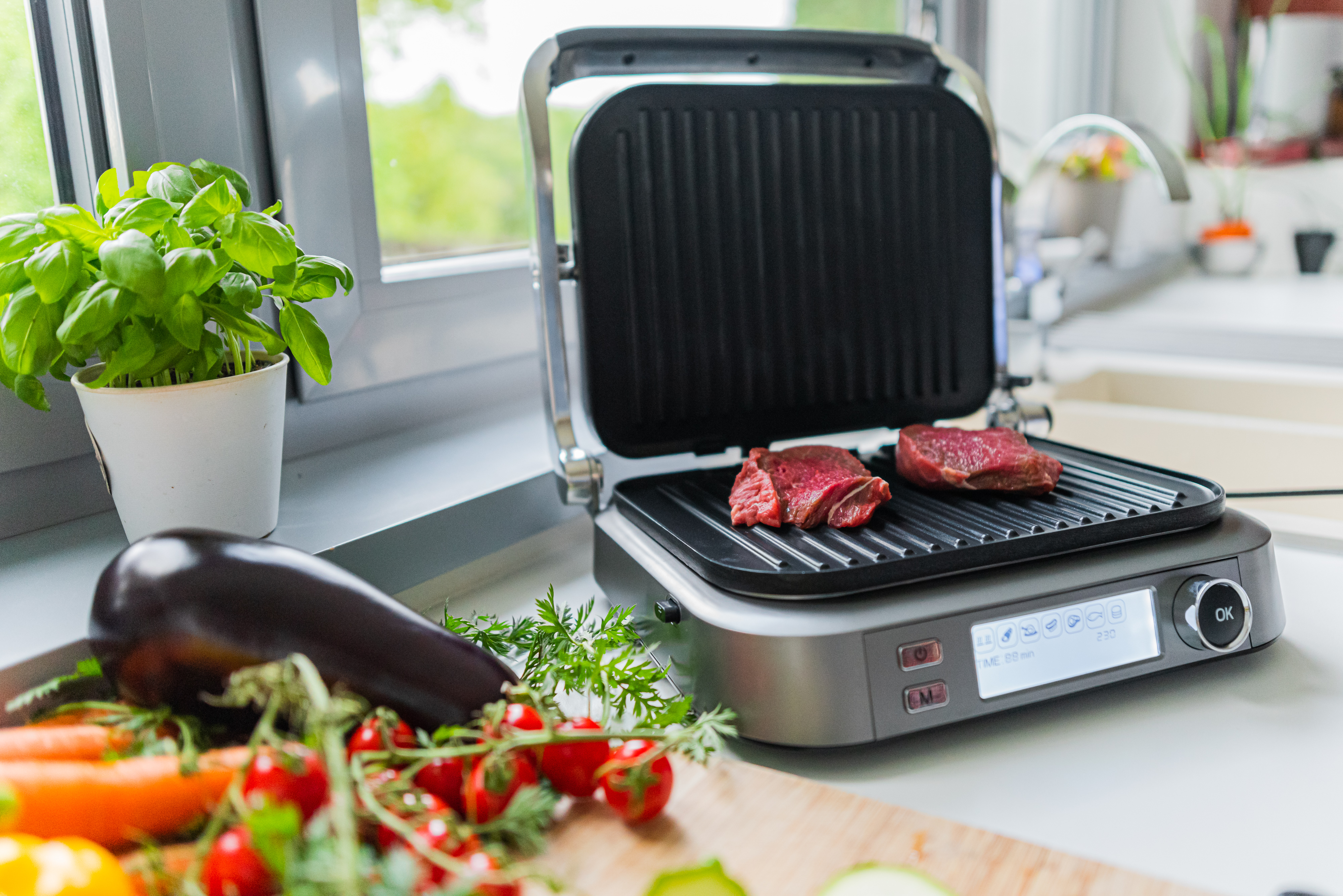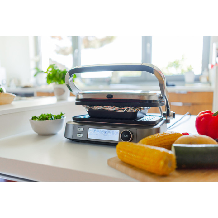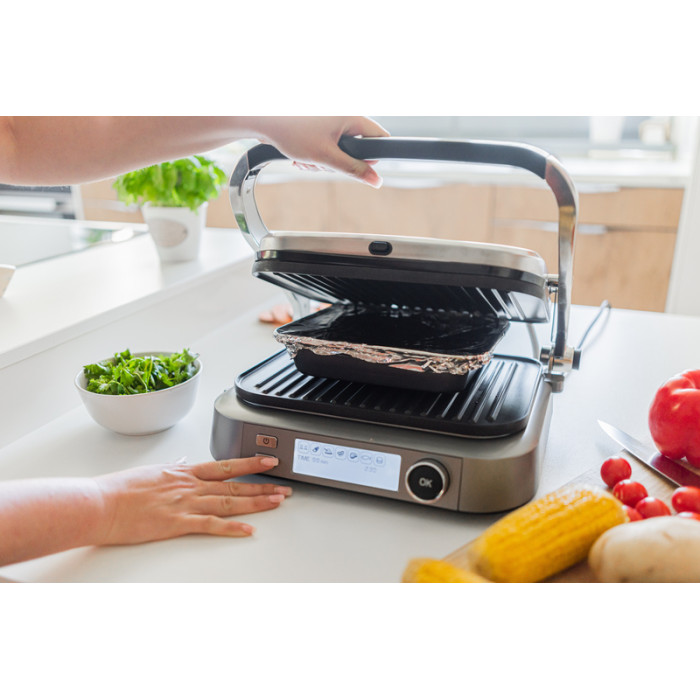 Жареные мясо, рыба или овощи в гриле-духовке не пересыхают и получаются максимально сочными. Легкая хрустящая корочка, которая образуется, когда вы выкладываете продукт в разогретый гриль, не дает естественному соку продукта вытечь. А система автоматического отключения позволит прекратить нагрев блюда по завершении приготовления и избежать подсушивания.