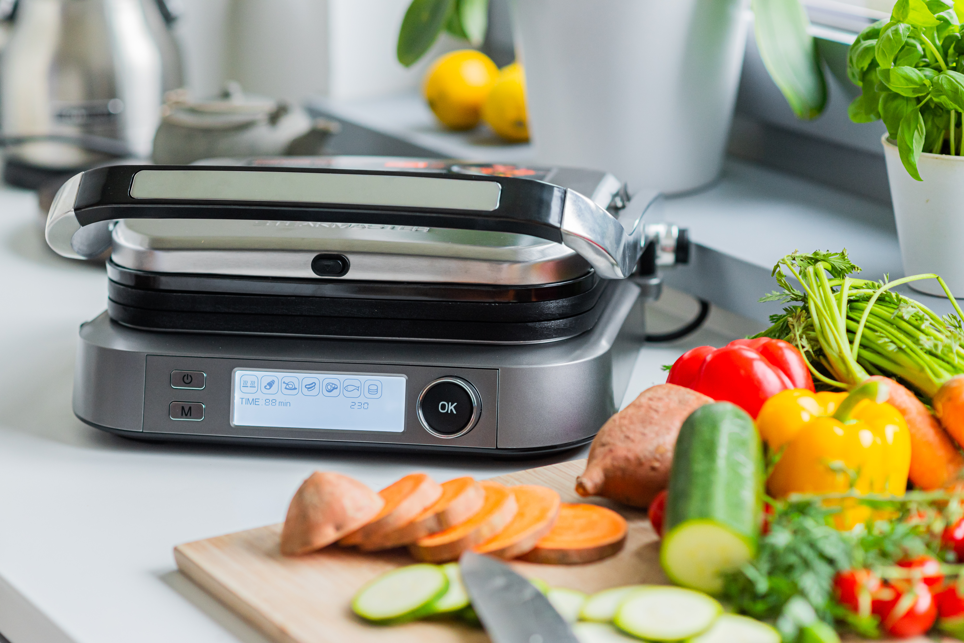 Если для приготовления блюда по вашему уникальному или авторскому рецепту из Интернета автоматические программы не подходят, вы всегда можете установить параметры работы гриля-духовки вручную: задать температуру в диапазоне от 70°С до 230°С с шагом в 10°С и поставить временной таймер до 88 минут.