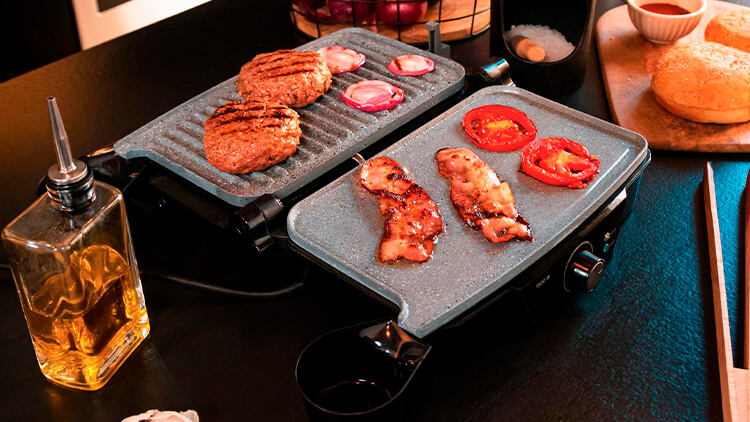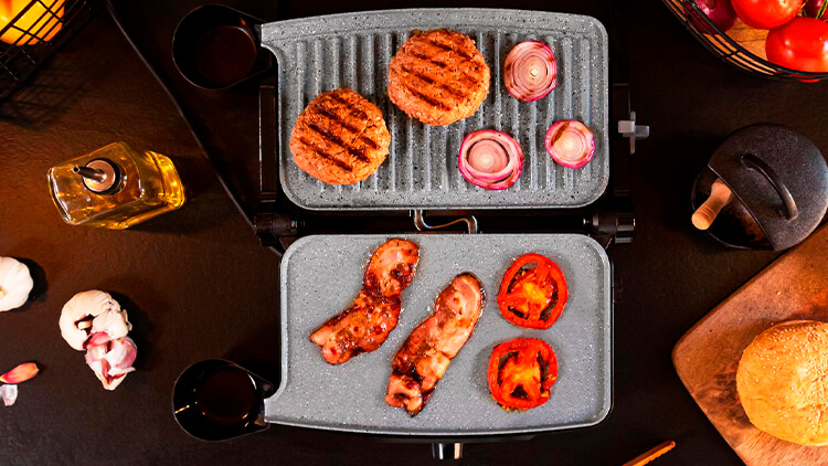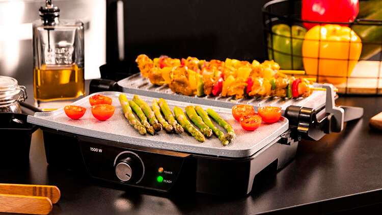 Чтобы зажарить шашлык, традиционный стейк или овощи-гриль, используйте CECOTEC Rock’nGrill 1500 Stone Ceramic Mix&Grill в открытом состоянии. Так сверху мясо схватится и будет хрустеть, а внутри сохранится сок. А если вы фанат барбекю, закройте кусочки верхней панелью и медленно доводите до готовности — такой метод имитирует томление на углях.