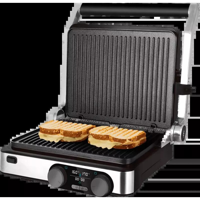 Двойной контроль температуры; Раскрытие гриля на 180 градусов; Светодиодный экран для контроля процесса готовки