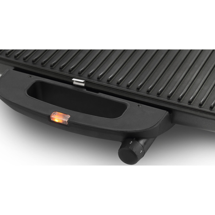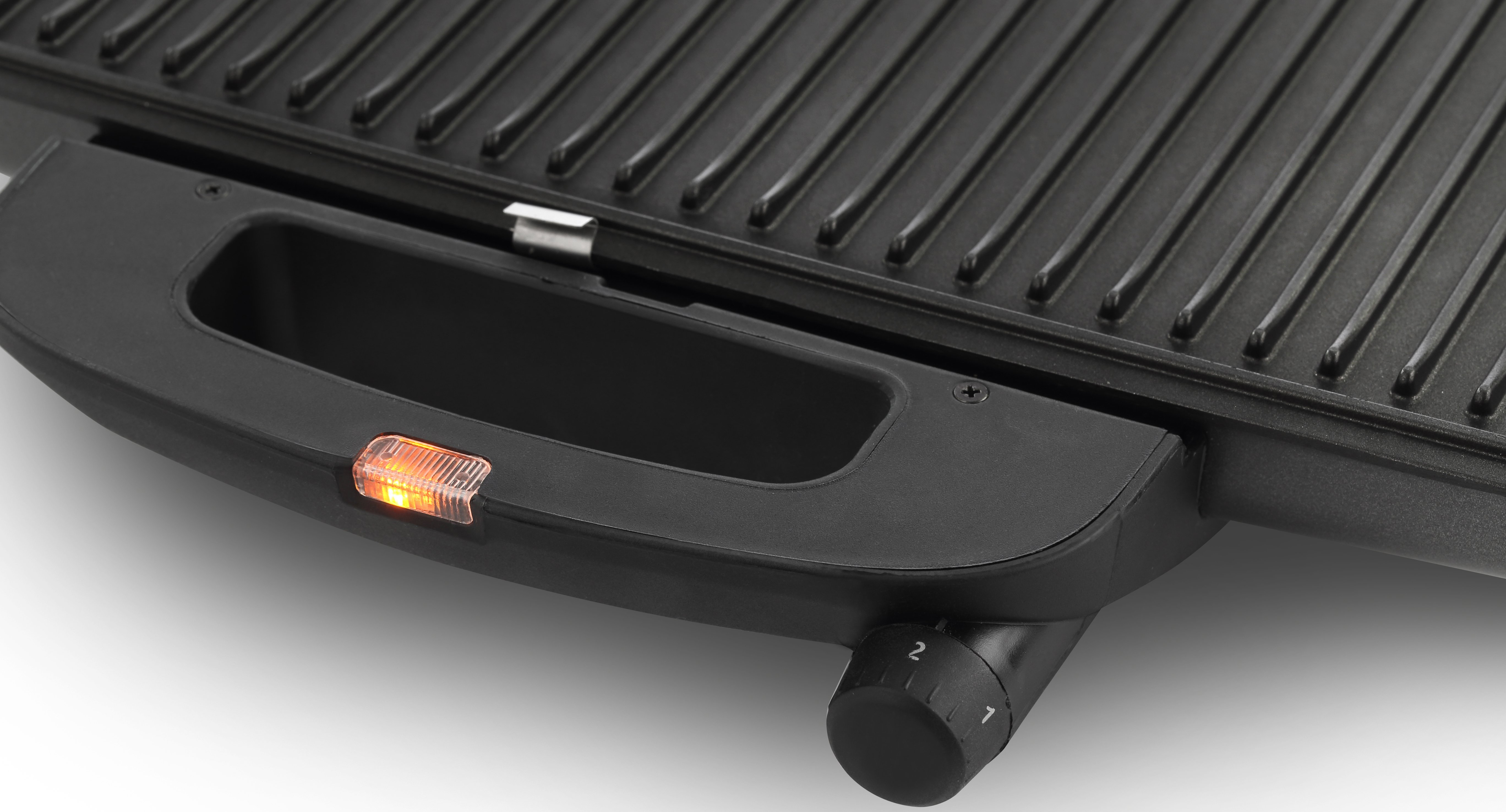 Температуру можно точно регулировать термостатом, что позволяет использовать гриль для любого вида продуктов и каждый раз получать превосходный результат. Температура жарочных пластин регулируется в пределах четырех уровней. При достижении заданной температуры выключается лампочка-индикатор. Пластины быстро нагреваются, экономя ваше драгоценное время.