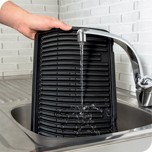 Благодаря съемным пластинам избавиться от жира и остатков пищи – просто.
