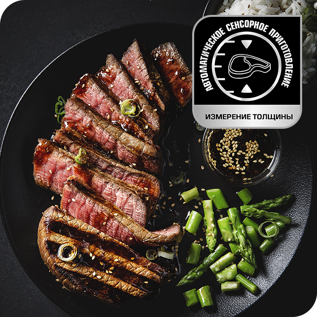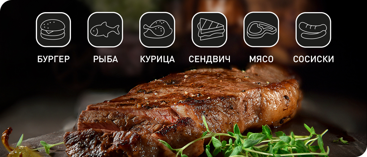 Гриль автоматически определяет толщину продукта и самостоятельно выбирает настройки для его приготовления.