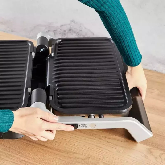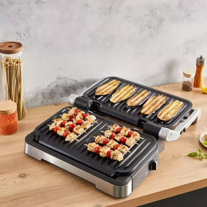 Материал пластин: алюминий; Длина шнура: 1.2 м; Нагревательный элемент: электрический ТЭН; Рабочая поверхность: 800 см²; Функции: Размораживание, Хранение в вертикальном положении, Функция сохранения пищи теплой, Режим для приготовления замороженных продуктов, Открывание на 180°; Съемные пластины безопасны для посудомоечной машины; Угол наклона панели - 7°; Автоматический сенсор приготовления; Автоматический сенсор измерения толщины продукта; Звуковые сигналы