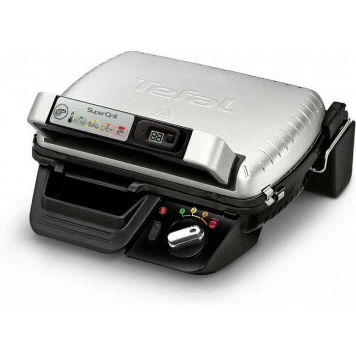 Готовьте вкусные и безопасные для здоровья блюда на контактном гриле TEFAL SuperGrill GC451B12. Устройство оснащено 4-позиционным термостатом, который позволяет работать с самыми разнообразными продуктами, от овощей до мяса. А цифровой таймер с функцией звукового оповещения дает возможность установить время для жарки, чтобы вы не забыли вовремя отключить нагрев.