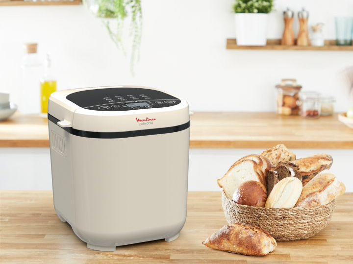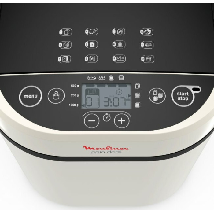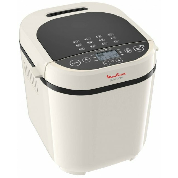 Это надёжный и компактный прибор, который поможет в любое время испечь хлеб дома, используя муку из разных зерновых — пшеницы, кукурузы, ржи. Модель Moulinex Pain Dore OW210A30 относится к лучшим многофункциональным хлебопечкам среднего класса с оптимальным соотношением цена—качество. Помимо выпечки хлебобулочных изделий, она умеет замешивать пресное и дрожжевое тесто, варить каши, джемы. Потребительские характеристики Мощная и простая в управлении хлебопечь Moulinex— универсальное решение для любой семьи. Используя её, можно выпекать хлеб и кексы весом от 0,5 до 1 кг, при этом доступен выбор степени подрумянивания корочки. Если нет времени ждать выпечки по стандартной технологии, можно сократить процесс почти вдвое: для этого в меню предусмотрена опция «быстрый хлеб». Бытовая хлебопечка — хороший выбор для людей, вынужденных соблюдать диету: прибор при необходимости обеспечит вкусной безглютеновой выпечкой. Выбирать нужный режим очень просто — вся информация представлена на ЖК-дисплее. Пользователю нужно лишь засыпать ингредиенты, всю работу умная машина сделает сама. К Moulinex Pain Dore OW210A30 прилагается книга рецептов, однако это лишь малая часть того, что можно готовить с помощью хлебопечки. Опытные хозяйки советуют экспериментировать с рецептурами, чтобы добавить в своё ежедневное домашнее меню ароматные булочки, свежую пасту и пиццы.