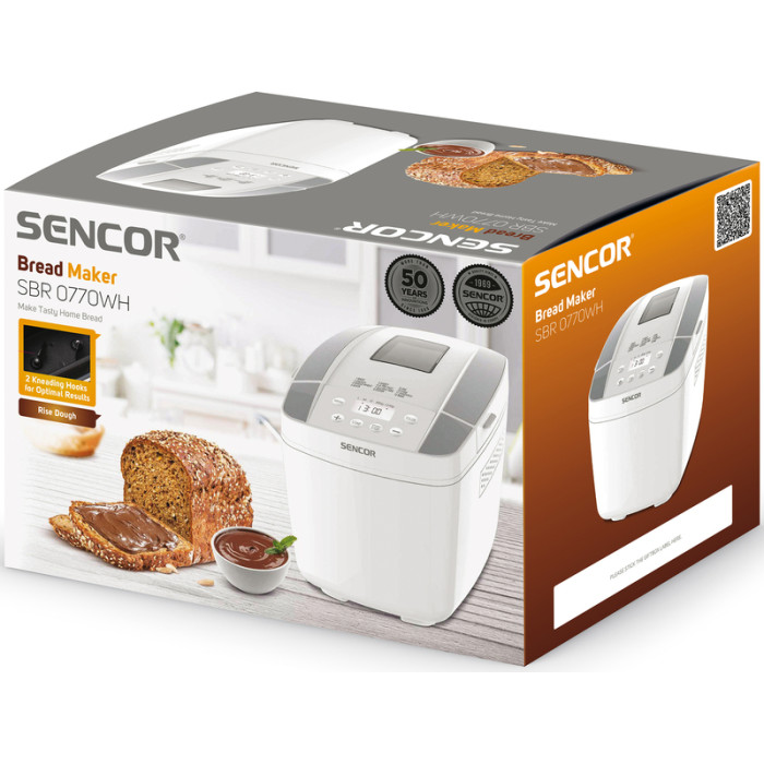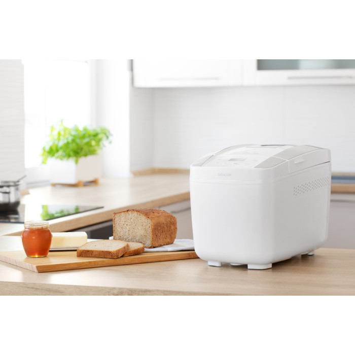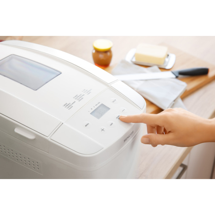 Крышка со смотровым отверстием; Память на 10 минут в случае сбоя эл. питания (хлебопечка продолжает далее выпекать); 3 уровня установки цвета корочки (светлая / средне тёмная / тёмная); Функция поддержания температуры на 60 минут по окончании выпекания; Антипригарное покрытие формы и крюка замеса для простого ухода; Форму можно мыть в посудомоечной машине; Акустический сигнал для добавления ингредиентов, требующих меньшего времени выпекания; Нескользящие ножки