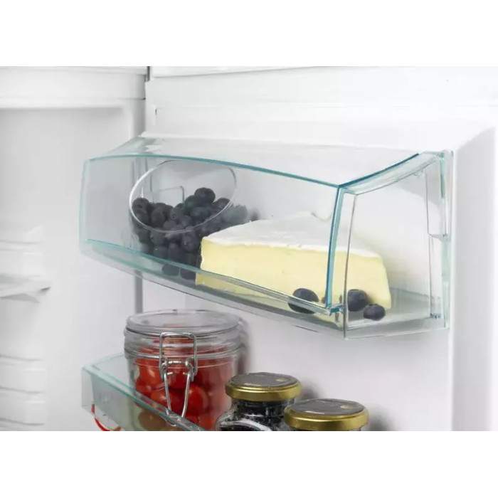 Несколько ударопрочных стеклянных полок с возможностью перестановки обеспечивают простоту и надежность для размещения продуктов и посуды различного веса и размера. А глубокие и объемные лотки для овощей и фруктов легко вместят большой запас свежих продуктов и зелени.