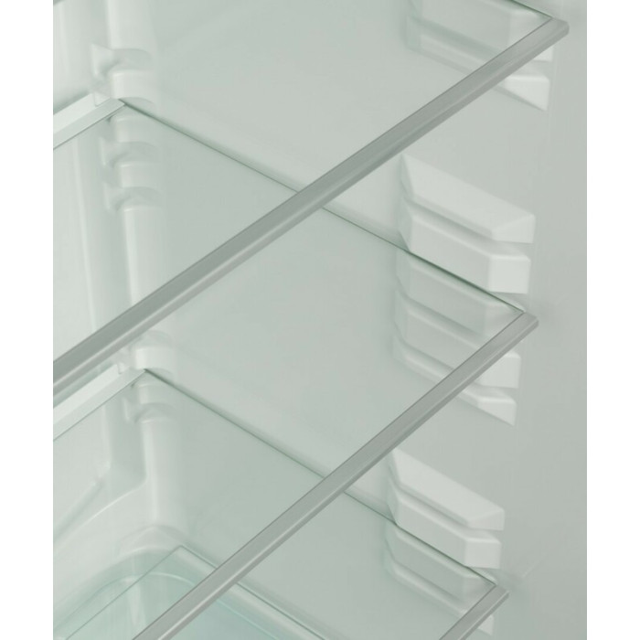Полки из закаленного стекла выдерживают вес до 25 кг, их тяжело разбить и поцарапать, но очень легко чистить. Закреплённые рамы в передней и задней частях полки не позволят разлившейся жидкости капать на нижние полки. Положение полок легко можно отрегулировать — поменять их высоту или вынимать совсем.