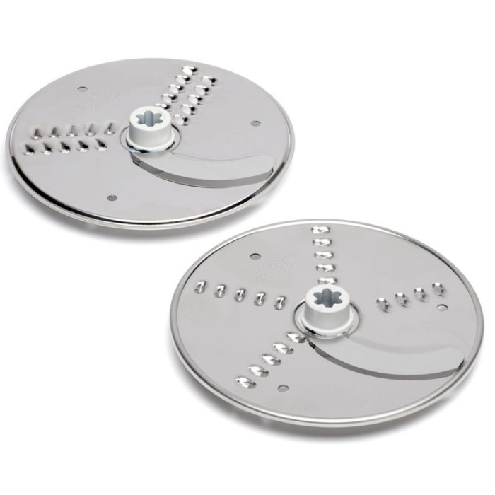 Чаша объемом 1.9 л, чаша объемом 0.7 л, универсальный нож 2 шт, диск для нарезки/шинковки ломтиками малой (2 мм) и средней (4 мм) толщины.