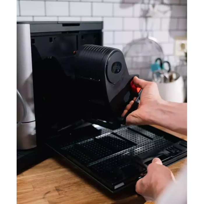 Ухаживать за кофемашиной — максимально просто. Съемный заварной блок легко очищать, а удаление накипи и промывка осуществляется одним нажатием кнопки.
