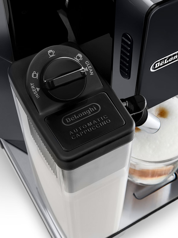 Новая система "LatteCrema" — кофе на любой вкус, капучино с пышной пенкой всегда идеальной температуры. Система автоматической очистки вмонтирована в ручку для регулирования количества пенки — удобно и легко чистить все компоненты системы, которые контактируют с молоком. Контейнер для молока можно поставить в холодильник.
