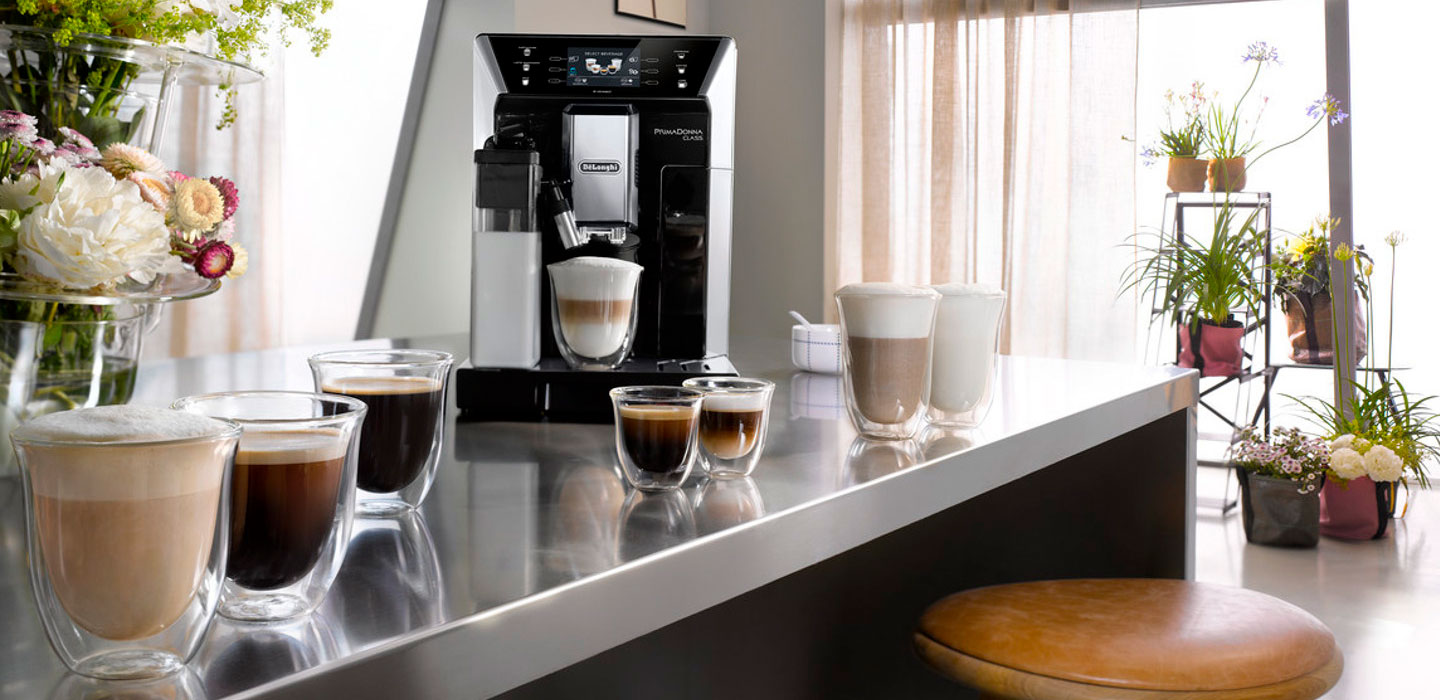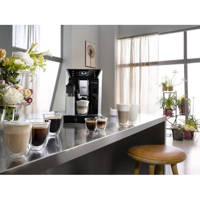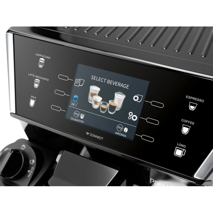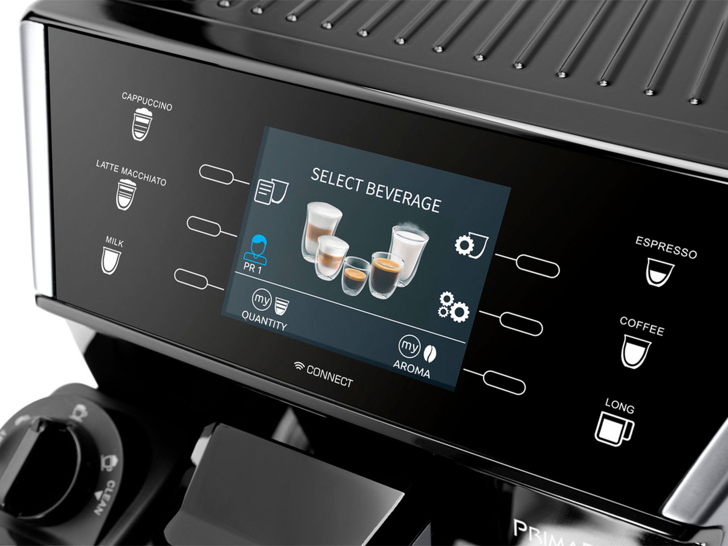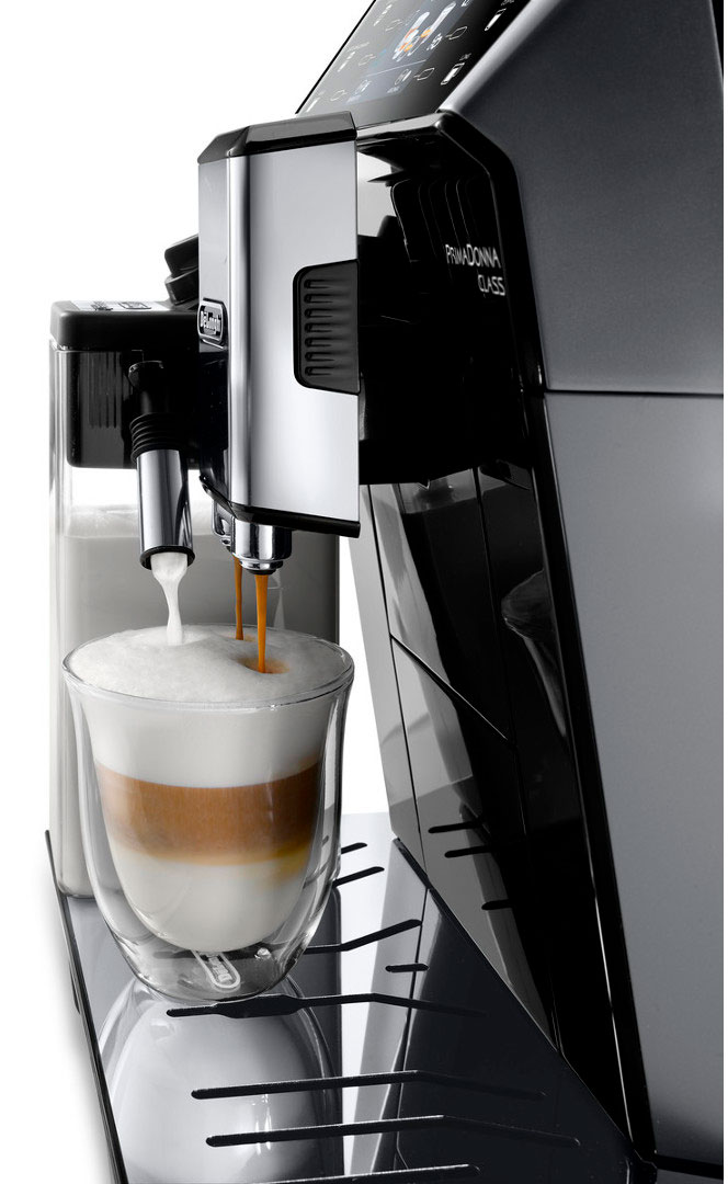 DeLonghi PrimaDonna Class – автоматическая кофемашина премиум класса, способная готовить кофе не хуже профессионального бариста. Она оснащена цветным TFT дисплеем с сенсорными кнопками, имеет автоматическую систему «капучино» и множество предустановленных и настраиваемых программ приготовления кофе. А увеличенное с 15 до 19 бар давление помпы, управление при помощи приложения прямо со смартфона и автоматическая очистка от накипи делают ее действительно простой в использовании и обслуживании. И все это дополнено стильным дизайном, который впишется в любой интерьер и даже станет его изюминкой.