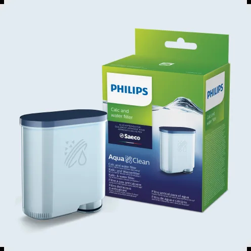 ¹По внутреннему тестированию Philips. Из расчета 8 замен фильтра согласно индикации на кофемашине. Фактическое количество чашек зависит от выбранных кофейных напитков, циклов промывки и очистки. AquaClean - АкваКлин.