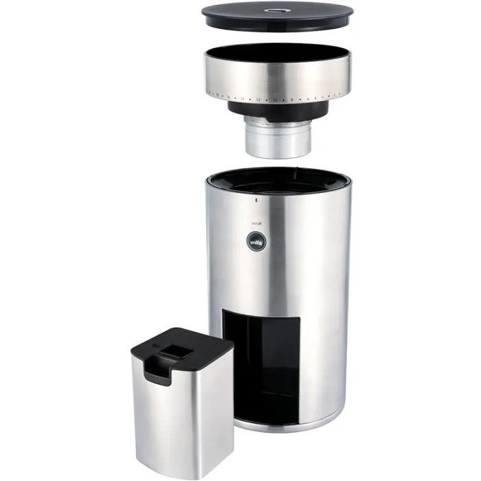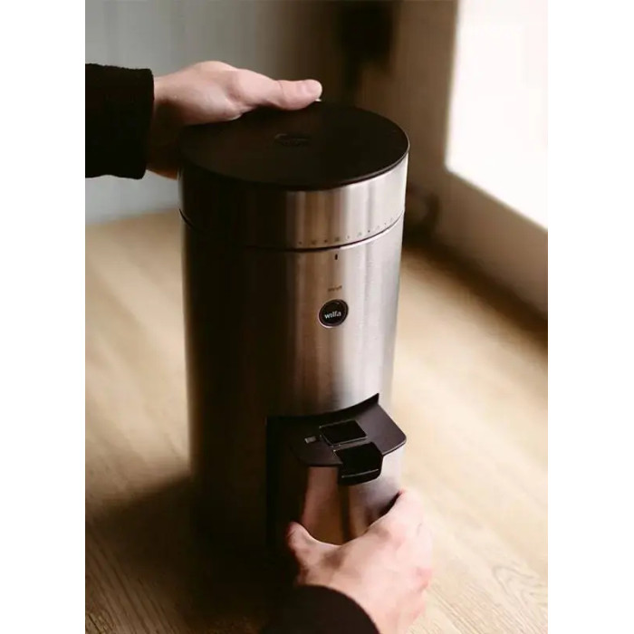 Емкость для молотого кофе изготовлена из нержавеющей стали. Это предотвращает статический эффект, поэтому кофейная пыль не попадает на кухонные столешницы. Работает не создавая беспорядок!