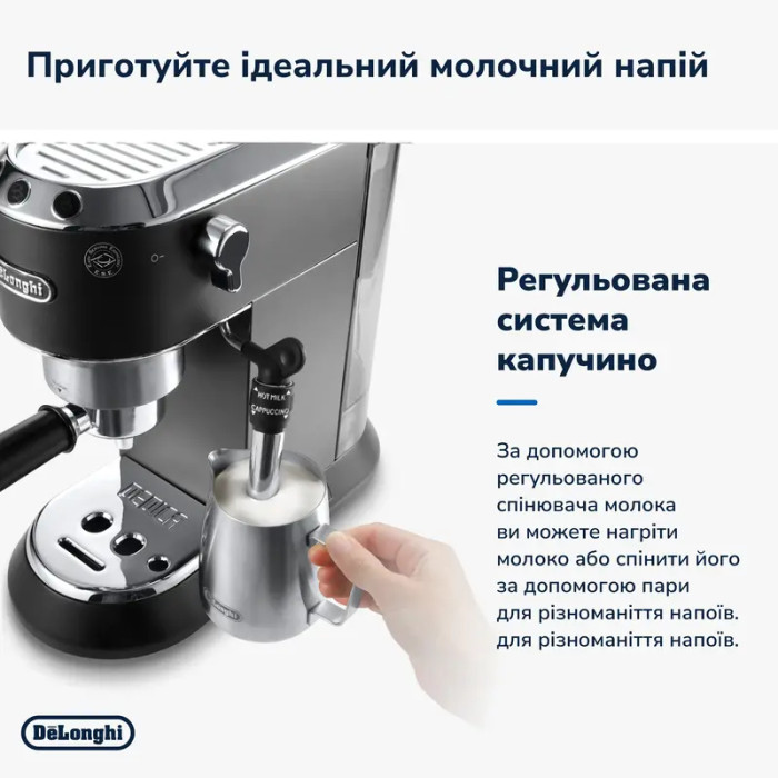 Кавоварка Dedica - незамінний супутник, коли ви хочете насолодитися чудовою італійською кавою, не виходячи з дому. Унікальний дизайн кавоварки Dedica містить цілу низку функціональних рішень, завдяки яким кожна чашка свіжозвареної кави задовольнить навіть найвибагливіших кавоманів. Компактний дизайн кавоварки, шириною всього 15 см, впишеться в будь-яку кухню.
