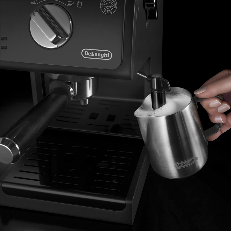 Купить кофеварку рожковую кофеварку DeLonghi ECP 31.21 BK – сделать правильный выбор. С ее помощью вы сможете готовить не только эспрессо, но и напитки с молоком. Делать это проще простого. Наполните молоком любую удобную емкость, опустите в нее насадку капучинатор и включите подачу пара. Кофеварка превратит молоко в легкую пенку – добавьте его в напиток. Капучинатор имеет функцию подачи горячей воды, поэтому с его помощью вы сможете готовить не только кофе, но и чай. Многофункциональность кофеварки радует, она станет отличным подарком для тех, кто знает толк в технике премиум-класса.