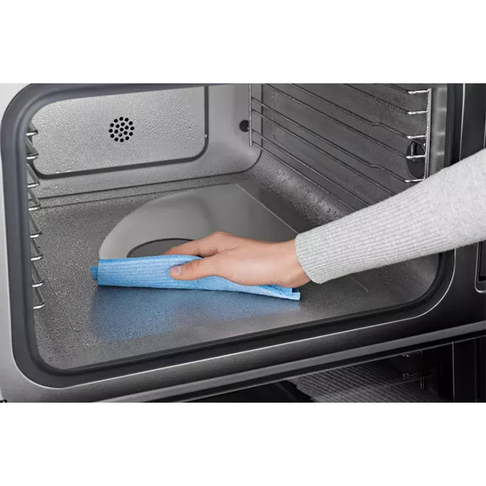 Места много, убирать быстро: рабочая камера из нержавеющей стали имеет полезный объём 40 литров, а значит в неё войдут большие контейнеры – например, для приготовления курицы или рыбы целиком. Вы можете приготовить полноценный обед на 8–10 человек. Помимо большого объёма, рабочая камера полностью защищена от ржавчины и очень легко моется.