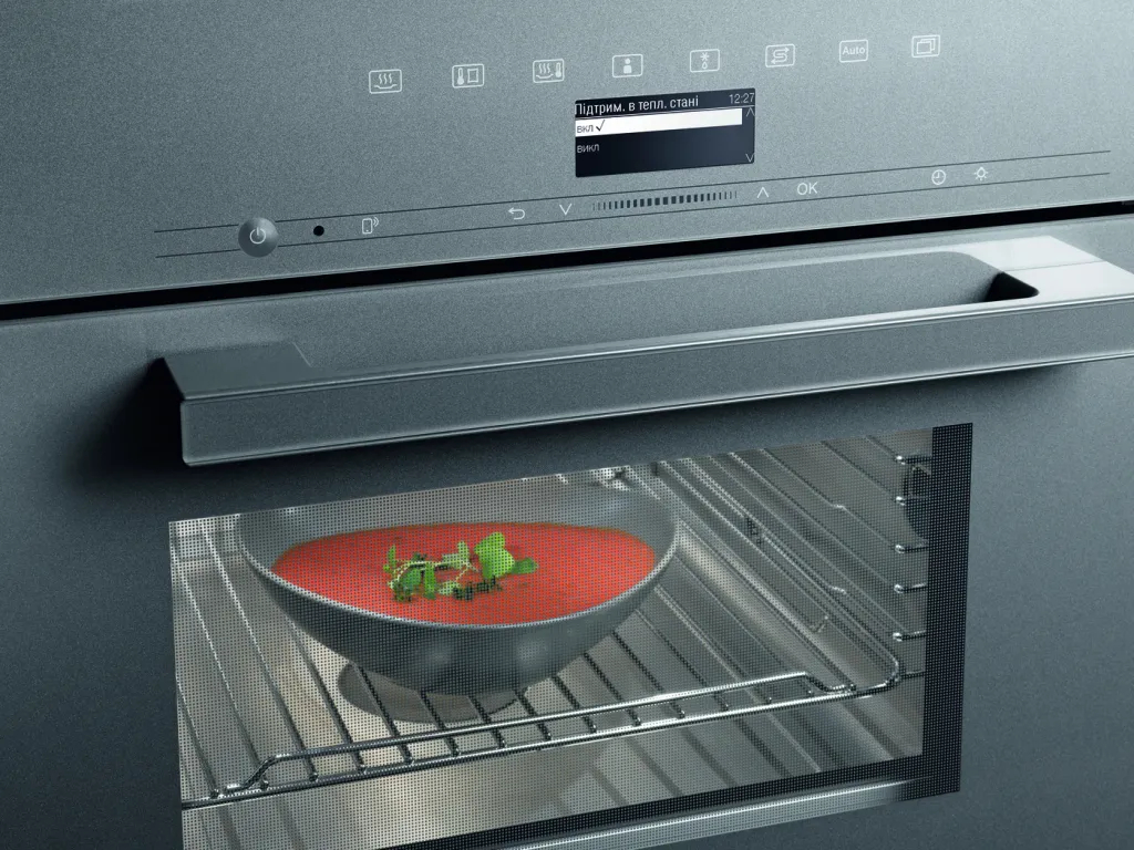 Блюдо сохраняет оптимальную температуру для подачи на стол в течение 15 минут после завершения программы. Поэтому задержка обеда на несколько минут – больше не проблема.
